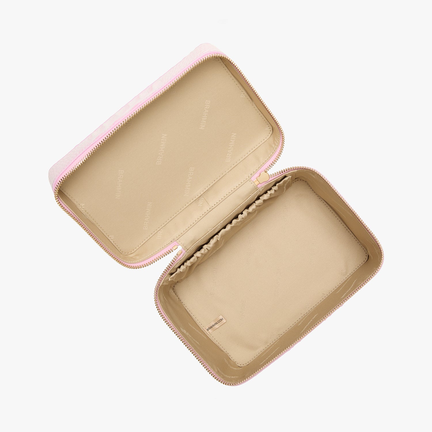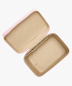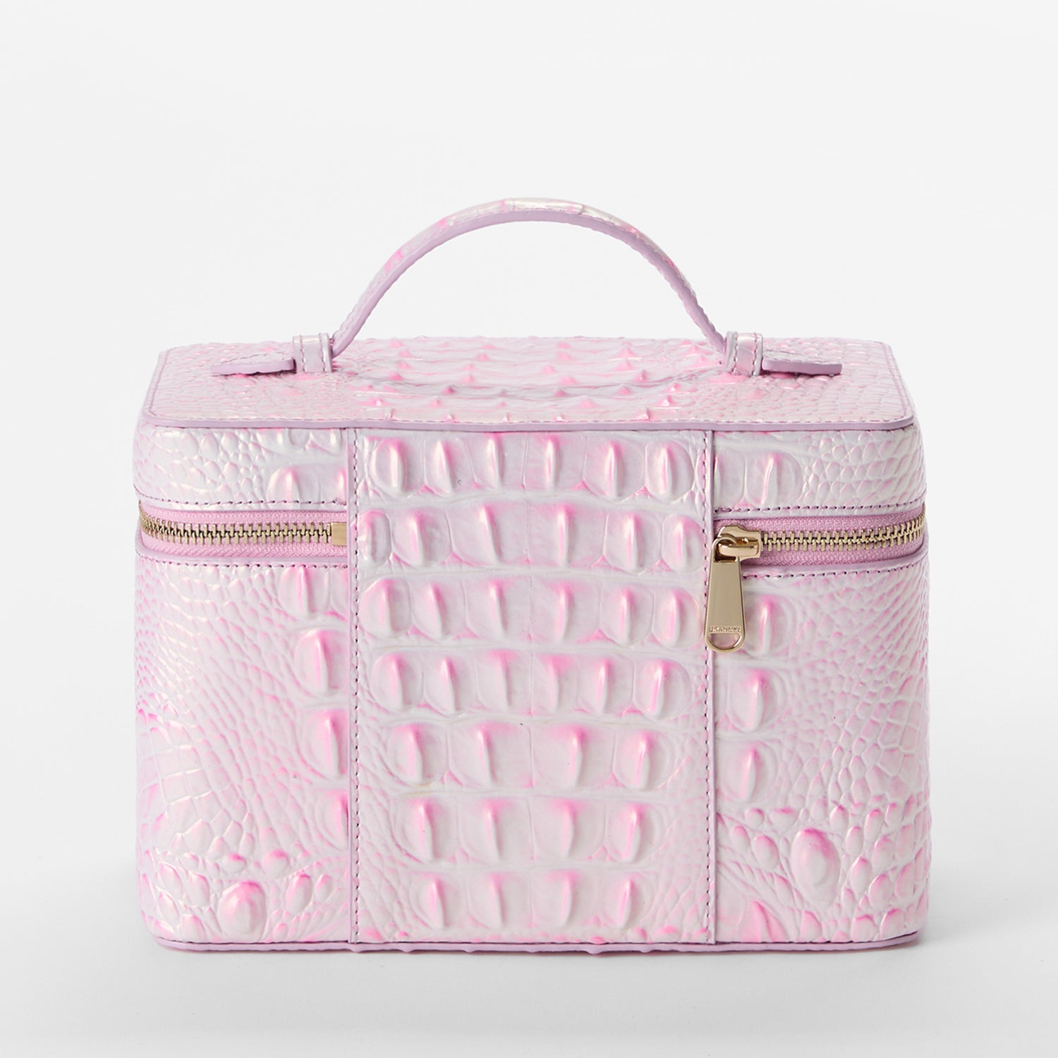 The Charmaine is a must-have travel makeup bag. This structured train case offers plenty of space for your cosmetics and toiletries. Store foundation, blush, powder, mascara, wipes, and more. Use the interior elastic pocket to keep brushes and other items in place. A wide zip-around opening makes it easy to retrieve makeup, while a hinge design lets you quickly view the inside contents. The top handle lays flat for easy storage.