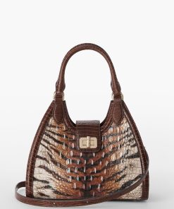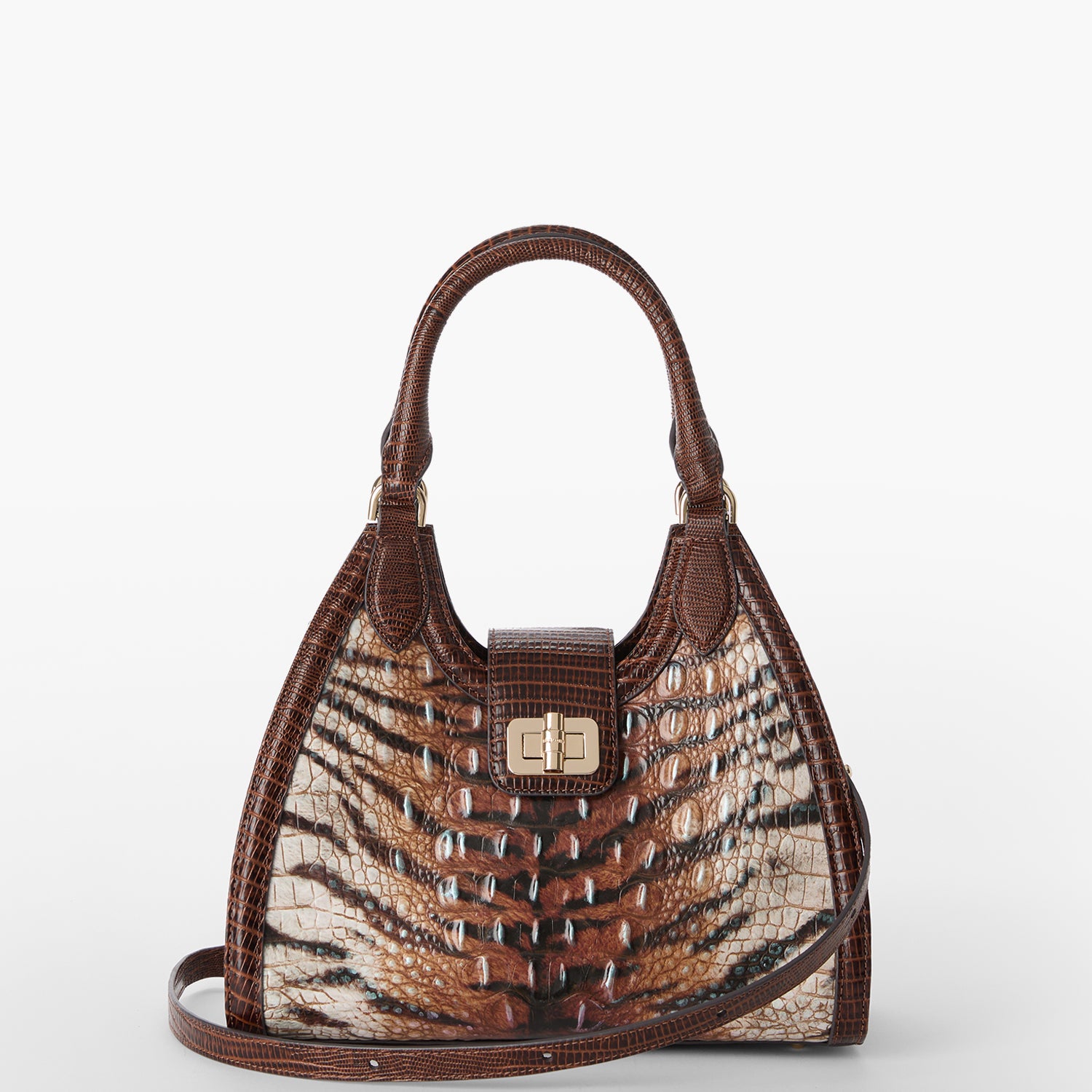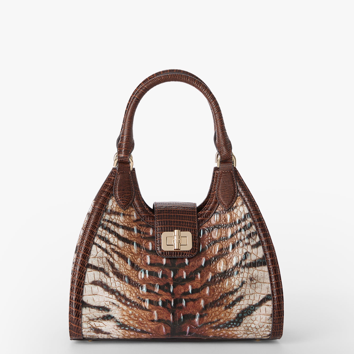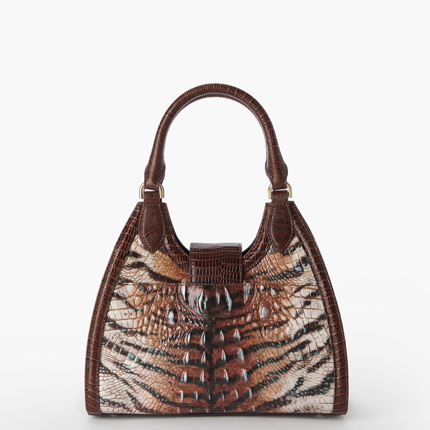Featured in Feline Hermosa, an elevated multi Melbourne that walks on the wild side. This tiger print blends together rich neutrals and a chestnut lizard trim that grounds the print with warm versatility. The clean detailing frames the print making this effortlessly wearable. Made with genuine leather.
