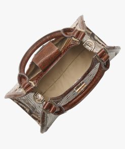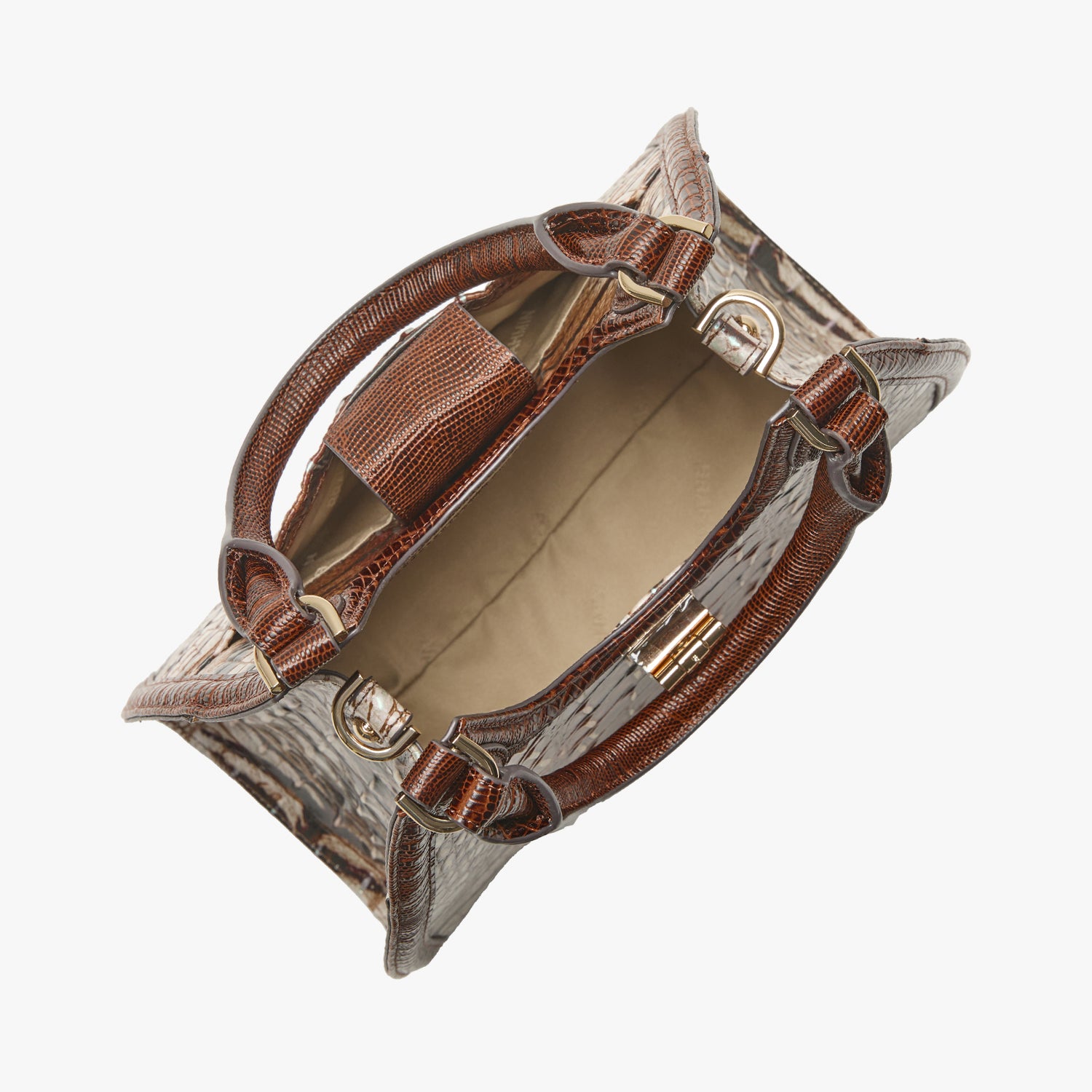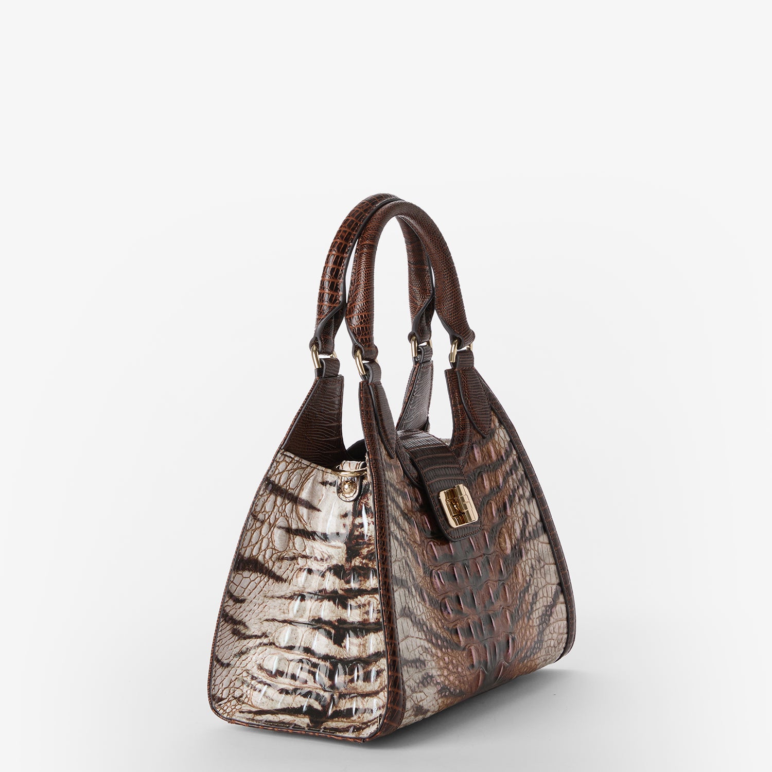 Adrian is a modern silhouette with a vintage twist. The smaller design is an easy carry featuring rolled handles for comfort, an adjustable strap, back slide in pocket for easy access, and interior organization. The bottom feet protect the bag from scuffing.