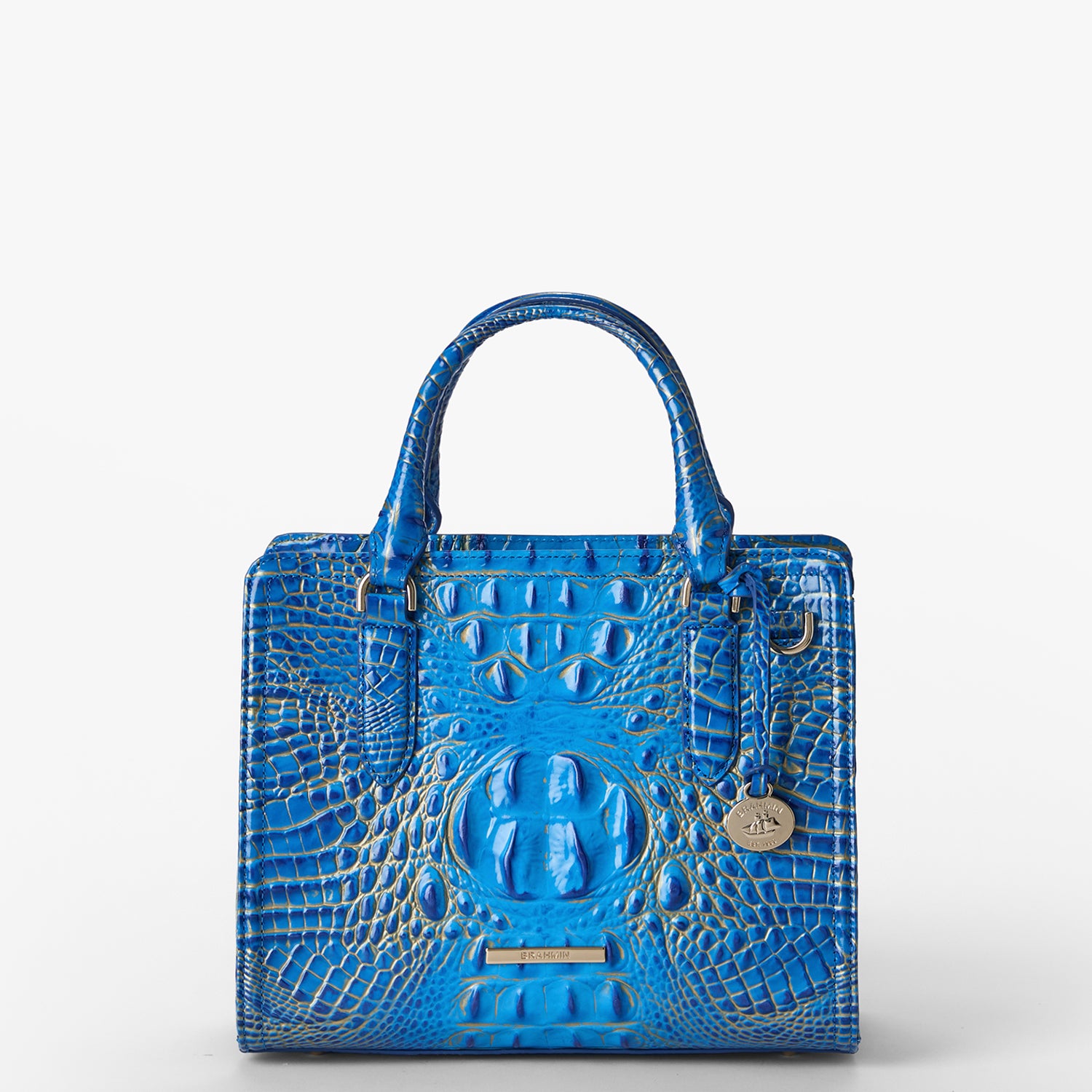Featured in Electric Indigo Ombre Melbourne, a vivid blue ombre. Saturated bold blues are enlivened by a touch of shimmery gold that captures attention with its intensity. Made with genuine leather.