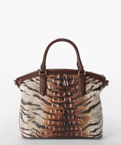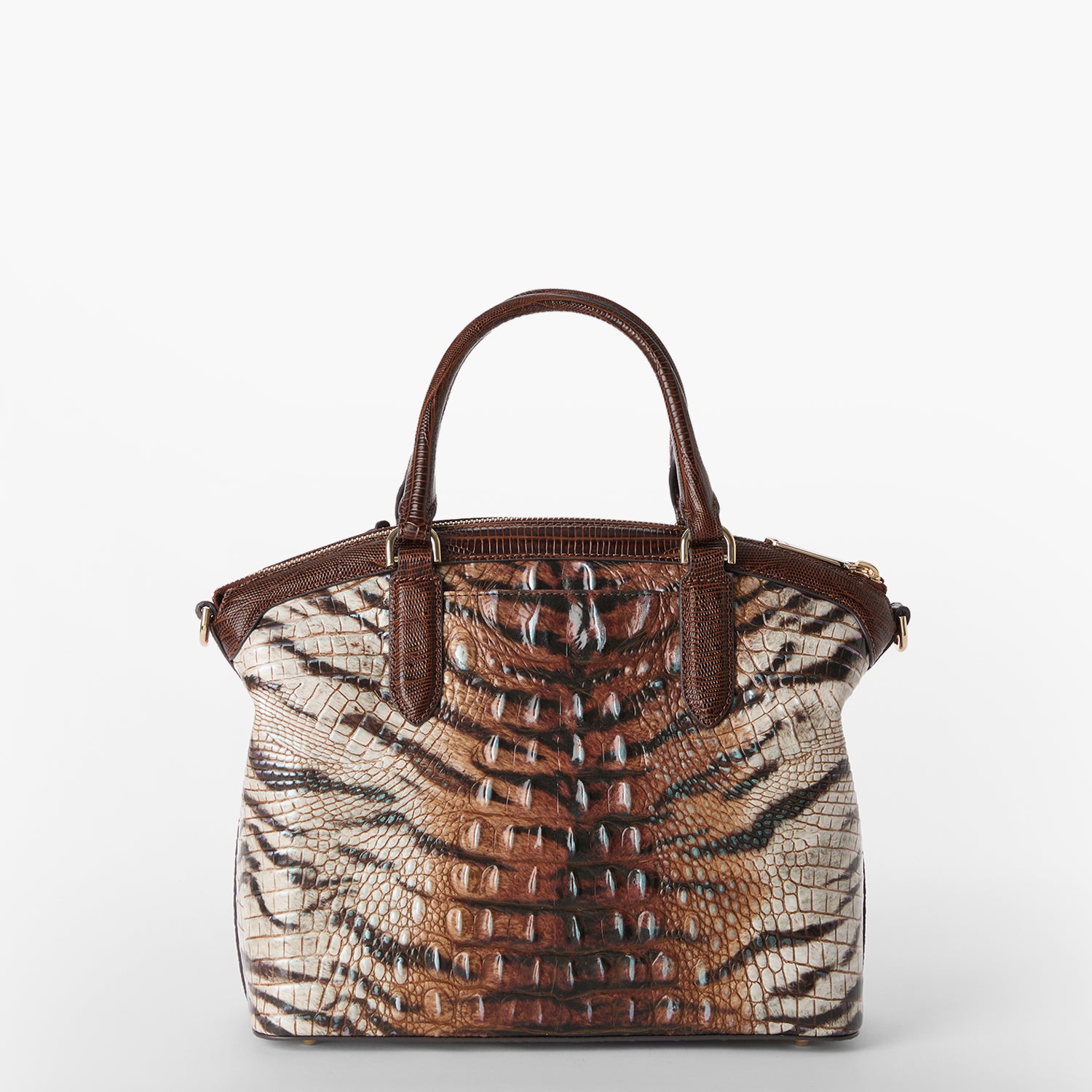 Featured in Feline Hermosa, an elevated multi Melbourne that walks on the wild side. This tiger print blends together rich neutrals and a chestnut lizard trim that grounds the print with warm versatility. The clean detailing frames the print making this effortlessly wearable. Made with genuine leather.