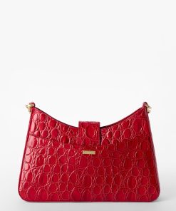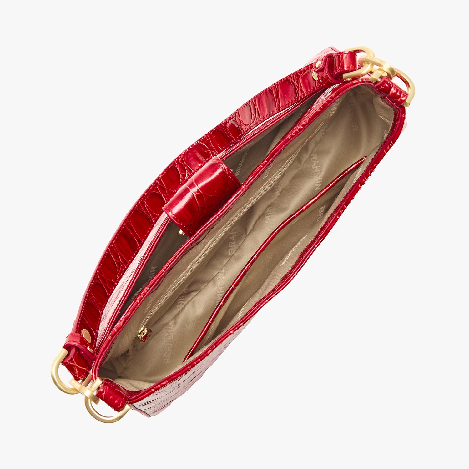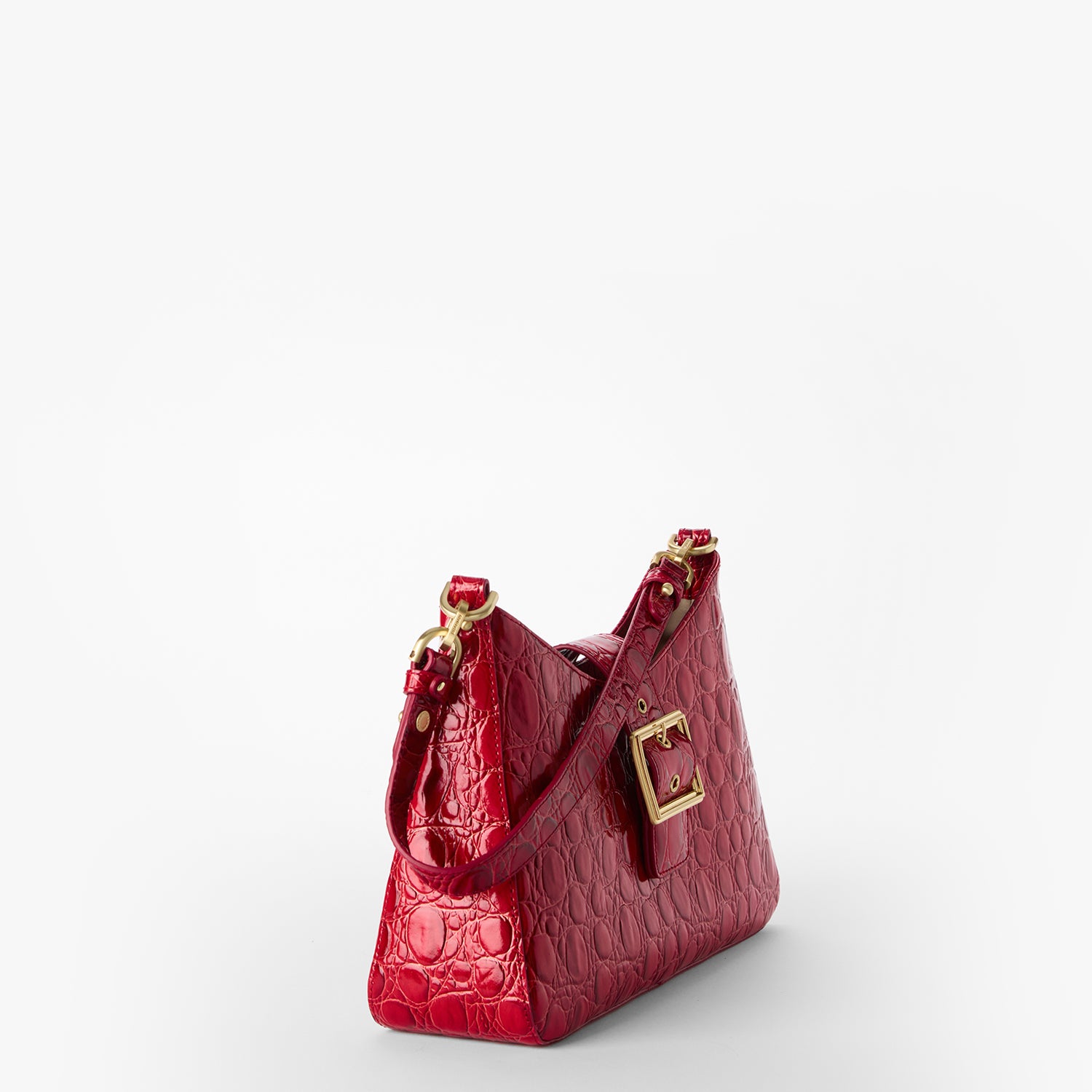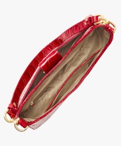 Featured in Sriracha Vanderbilt, a sophisticated new croc texture in a spicy new red for summer. This croc embossed leather features a rounded texture reminiscent of vintage crocodile handbags for a luxe look. The statement square metal buckle brings added sophistication to the overall collection. A hot hue in statement Sriracha is perfect for warmer weather. Made with genuine leather.