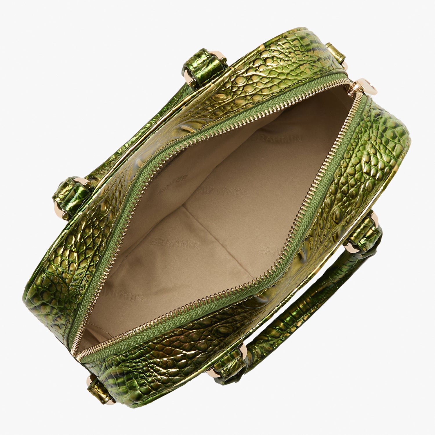 Featured in Cacti Green Melbourne, a tonal metallic olive green. This dimensional green is inspired by the lush paradise of the American desert. The metallic shines through, giving this an eye-catching element that feels perfect for warmer weather. Made with genuine leather.