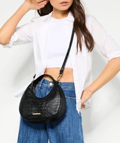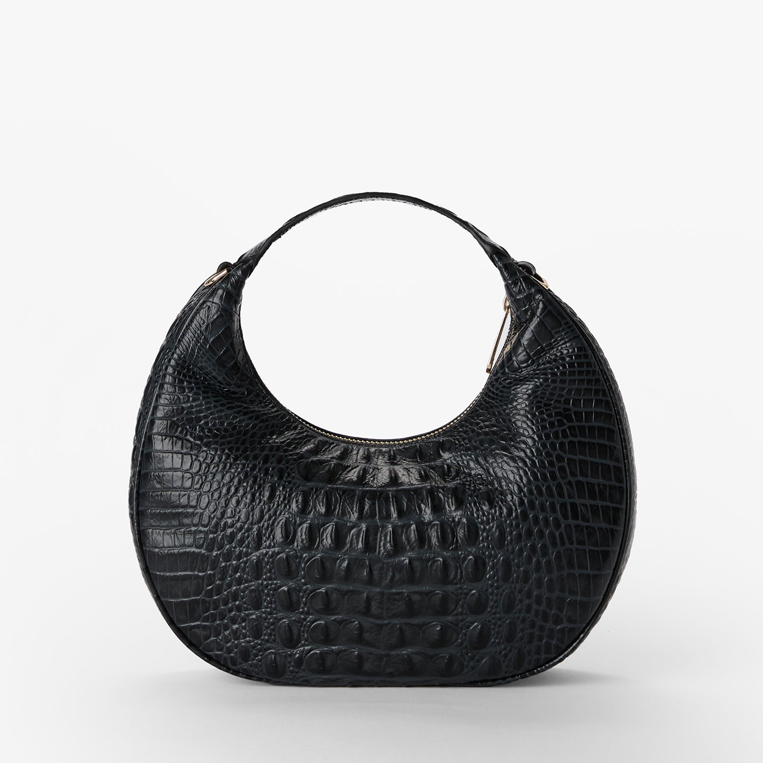 Mindy in our Alden Road leather, a lightweight, soft iteration of our iconic croc-embossed leather with casual construction that appeals to your softer side. A small trending crescent shaped crossbody bag with a soft, slouchy silhouette for low-key luxury. The size is perfect to carry as a shoulder bag or use the adjustable strap to wear as a hands-free crossbody.