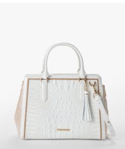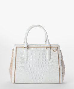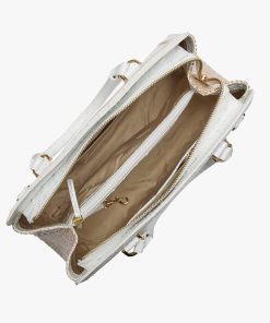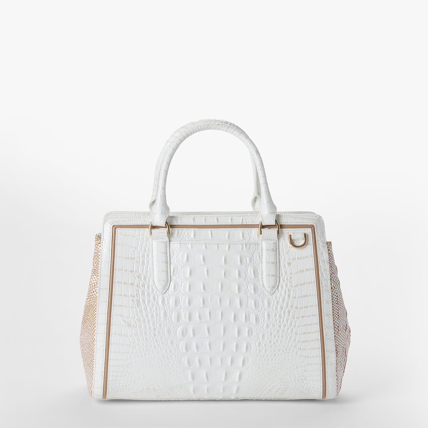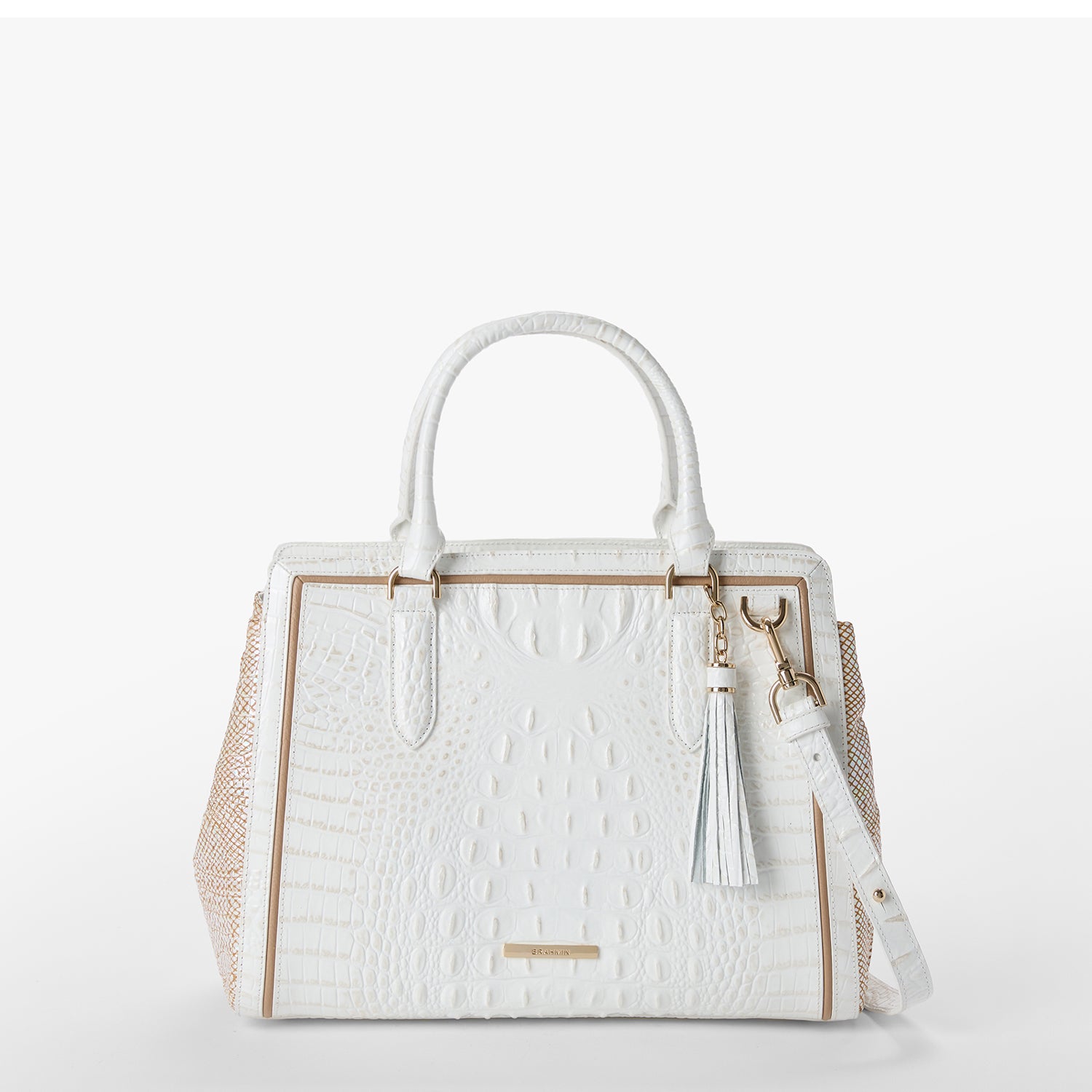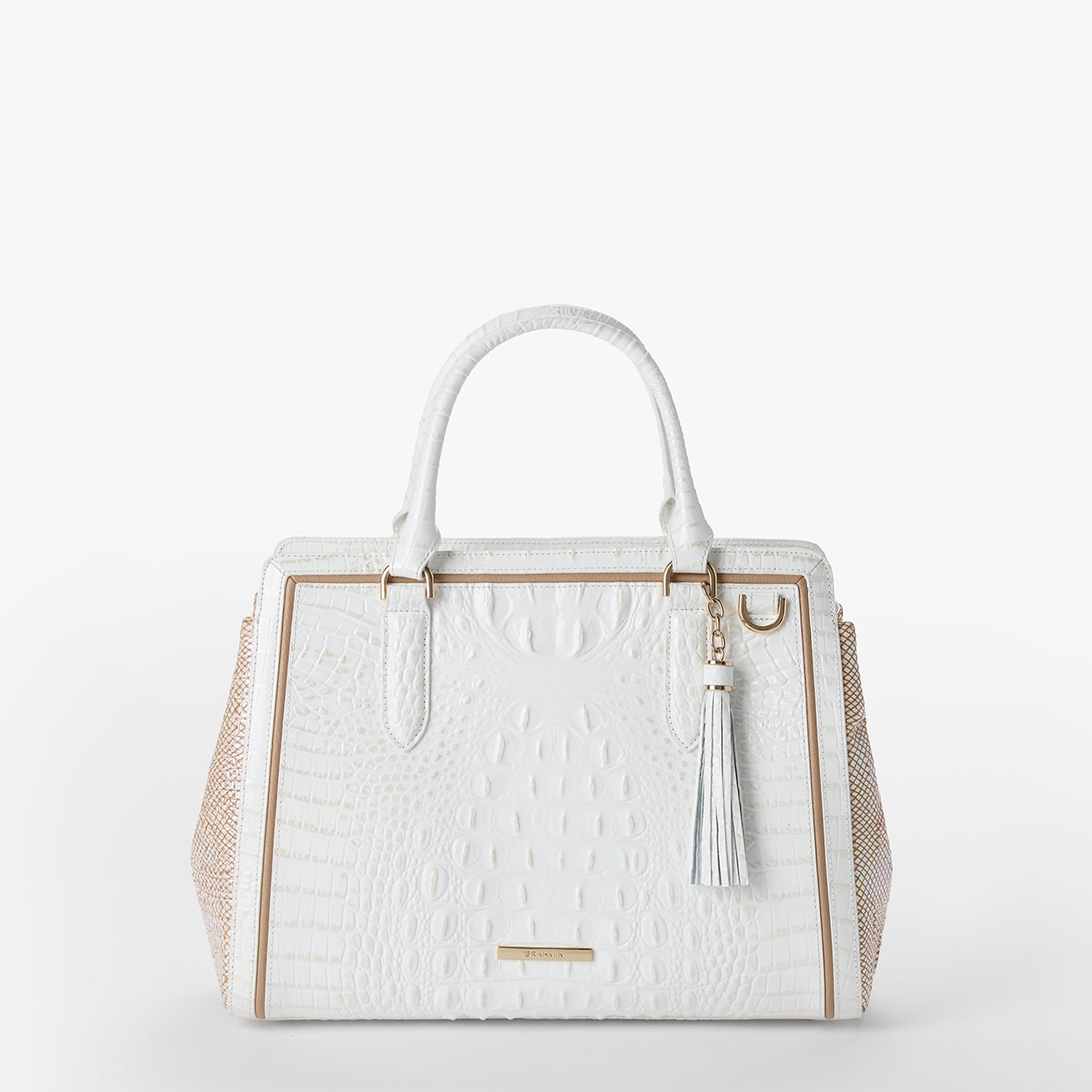 Featured in Sea Salt White Colada, a multi-Melbourne that combines some of our favorite neutrals in our iconic Melbourne leather. This brings together Sea Salt with a touch of iridescence in Tiramisu for a fresh twist on spring neutrals. The matching smooth trim gives this added dimension. Select styles feature an inlay leather buckle and a playful fixed tassel. Made with genuine leather.